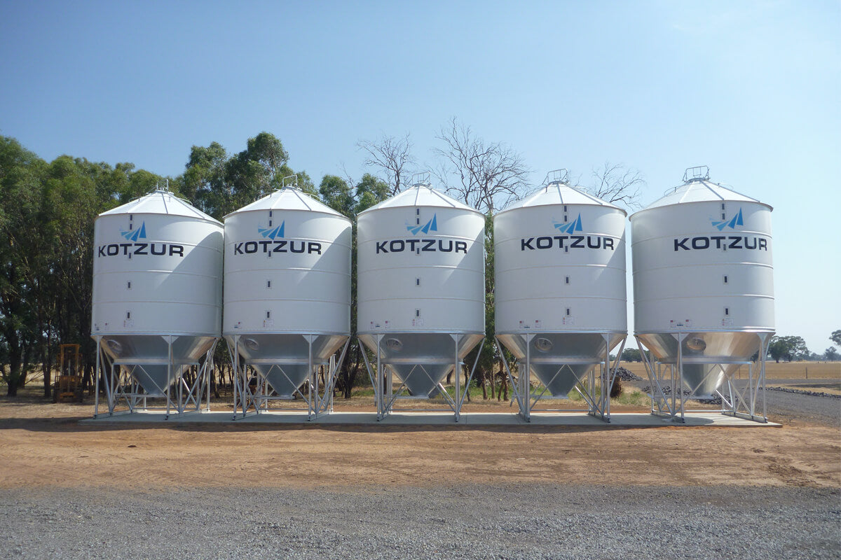 Kotzur Fertiliser silos are internally coated with a high build epoxy to provide extra durability against the harsh nature of some fertilisers. They are suited for the storage of super phosphate and other fertilisers, and may also be used for short term grain storage.