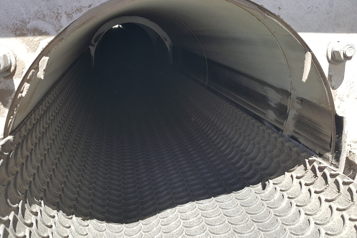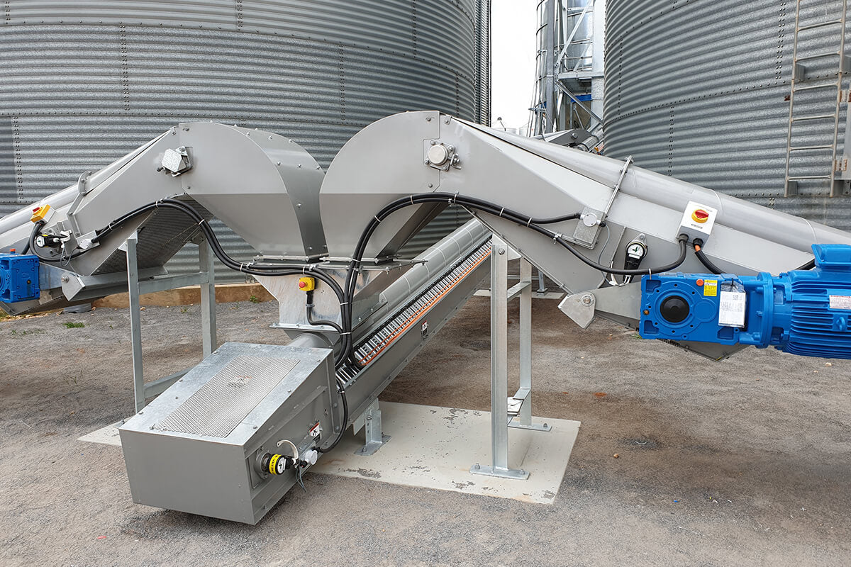 The Kotzur Tubeveyor is a cost-effective solution when conveying longer distances, such as reclaiming from a row of elevated silos.