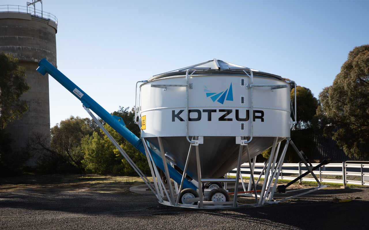 Kotzur field bins are designed for short term storage needs. With class leading size the Kotzur field bin has the capacity to service the growing category of B-double freight and with a 300 mm PTO drive auger has the out load speeds to maximize your efficiency.